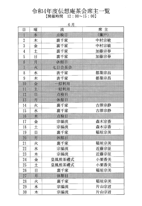 ※新型コロナウィルス感染拡大防止のため、お点前は中止し、点出しにて呈茶いたします。