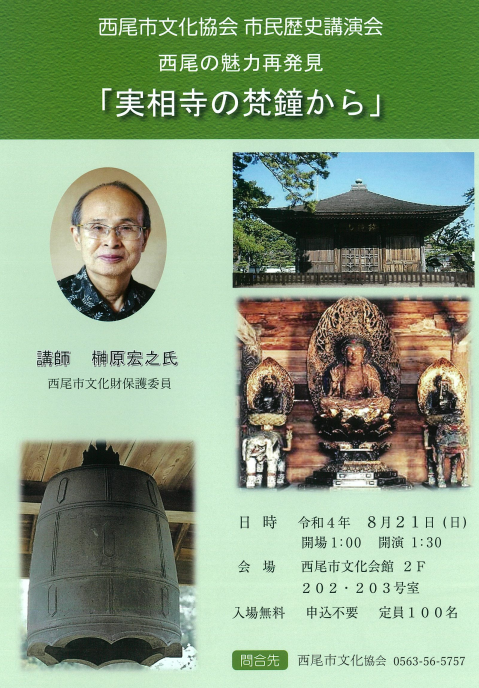 西尾市文化協会 市民歴史講演会 西尾の魅力再発見「実相寺の梵鐘から」