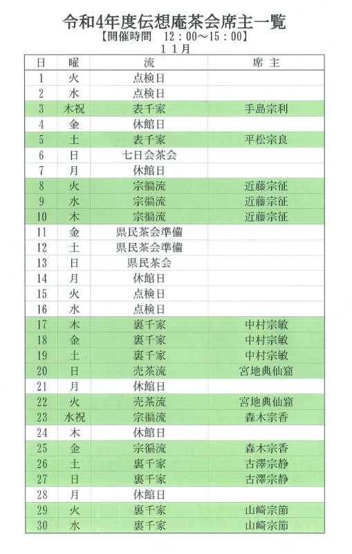 ※新型コロナウィルス感染拡大防止のため、お点前は中止し、点出しにて呈茶いたします。