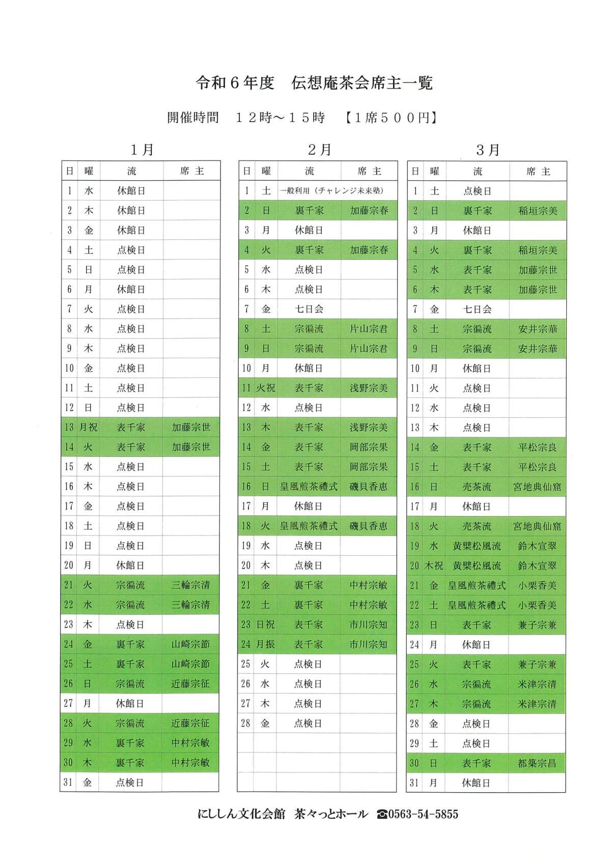伝想庵茶会開催日程表(1月~3月)こちらをクリックしてください。